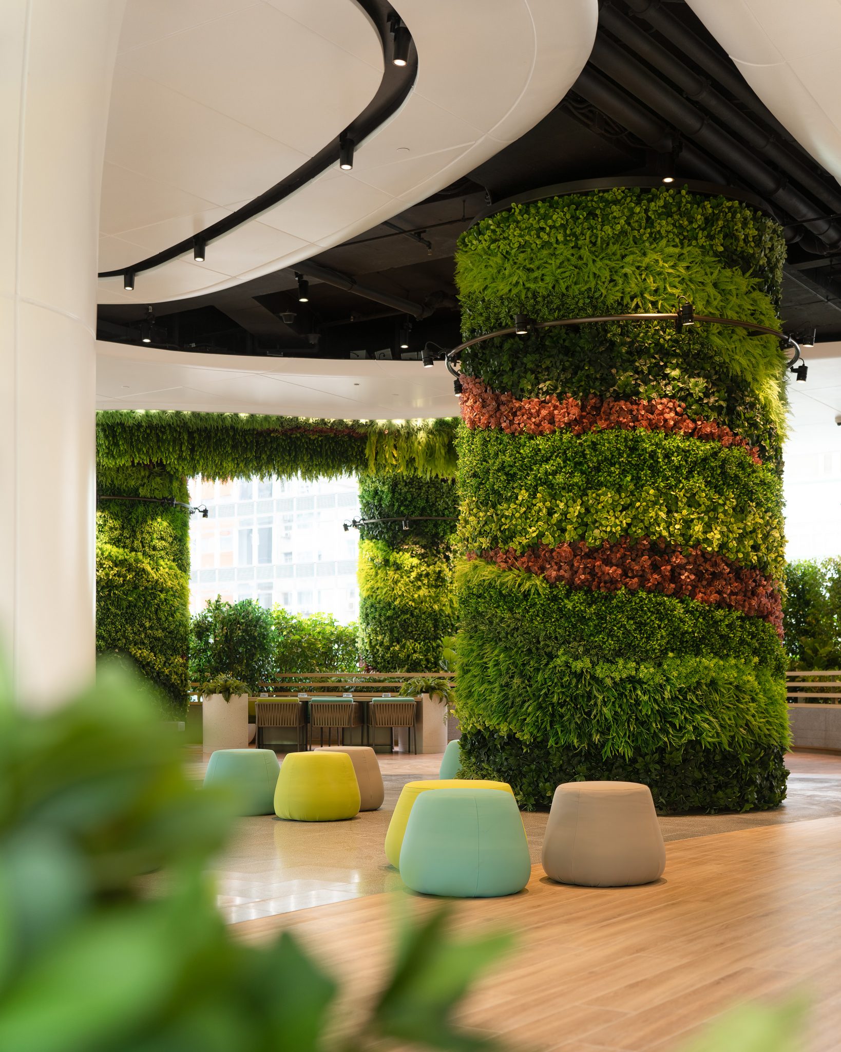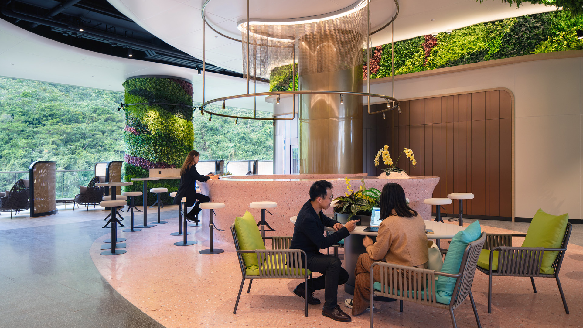 设计理念侧重于身心健康和可持续性,包括工作与生活的平衡和可持续发展。自然和人文景观被引入室内,模糊了室内外的边界,使空间更加灵动、通透。乘山海之势,坐拥黄竹坑的静谧与繁华,空中花园内的敞大空间有利启发更多创意和想象空间,有利推动生产力。